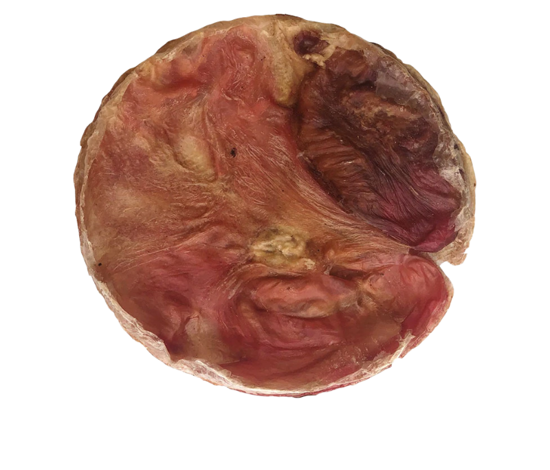 Beef bladder is high in protein and low in fat. Commonly used in the human food chain as a sausage casing.