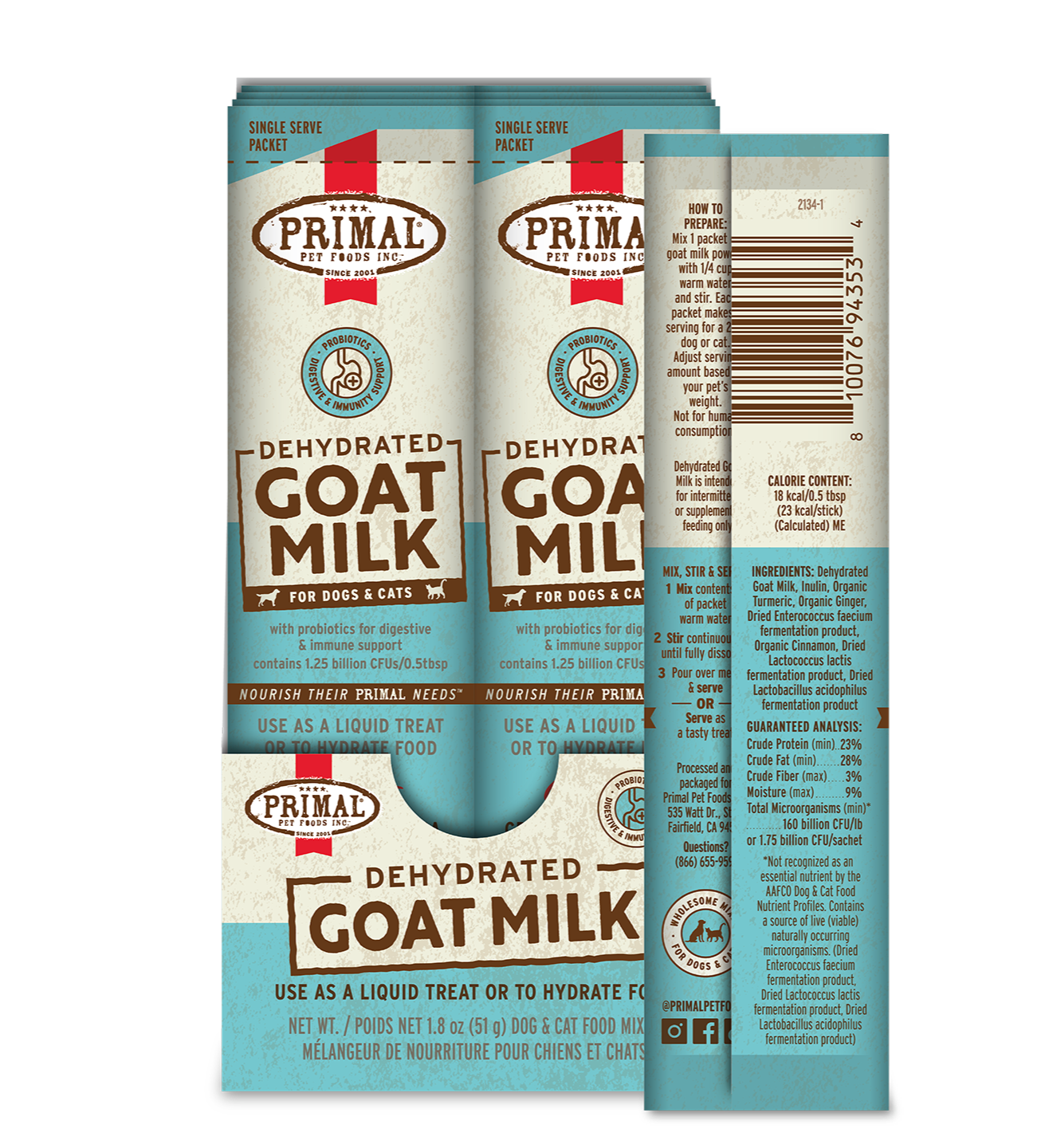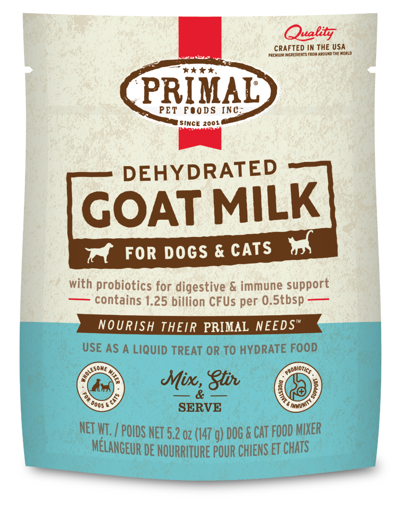 Give your pet more time in their prime with Primal Dehydrated Goat Milk. Our recipe contains probiotics that provide digestive and immune support and is sourced from certified humanely raised goats.