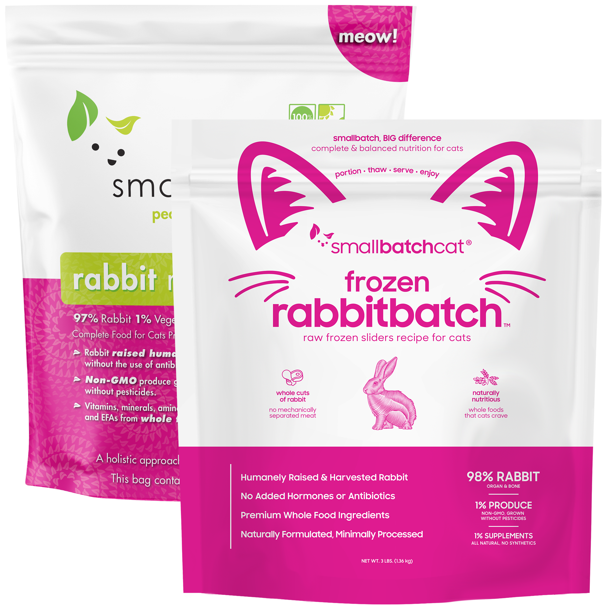 97% humanely raised and harvested rabbit, 1% organic produce, 2% natural supplements